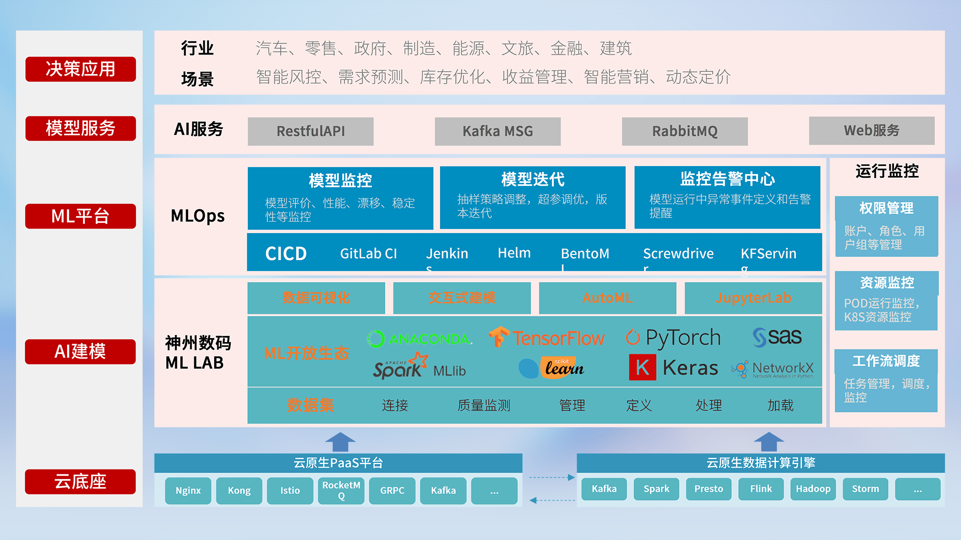 数据+模型双引擎驱动,,,,面向智能服务场景,,,,快速灵活利用AI技术,,,,支持业务决策,,,,助力企业智能化转型破局。。。